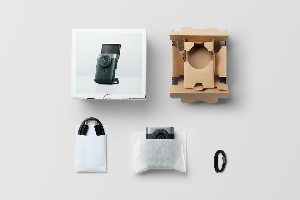 Craft paper and non-woven materials made from plants have taken the place of single-use plastics. The PowerShot V10 is Canon's first product to use plastic-free packaging* that is friendly to the environment as part of our ongoing commitment to sustainability.