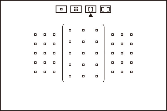 This mode divides the screen into three large zones (left, centre and right), each of which makes use of multiple AF points for focusing. Compared to Zone AF, Large Zone AF is suitable for subjects with more vigorous movements. The AF points are automatically selected within the zone, and the number of AF points used also varies according to the condition of the subject.