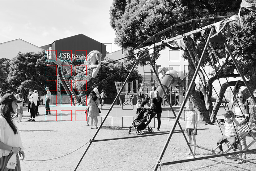 In this example, focus was established only on the child on the swing with other AF points not responding to the rest of the people and buildings in the image.