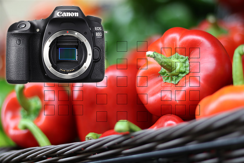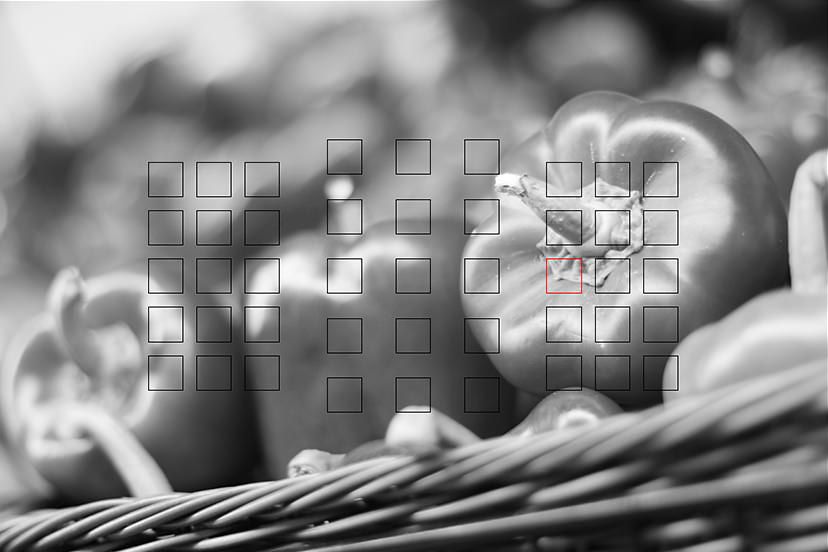 In this example, I established focus on the face of the red bell pepper on the right after selecting Single-point AF.