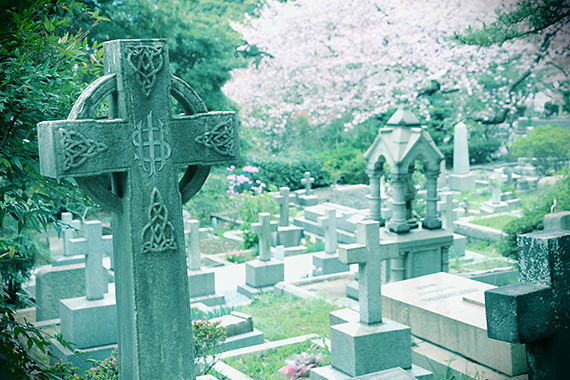 A photo taken at a cemetery with an intriguingly photogenic feel. To create a movie-like ambience, I chose the [Toy camera effect] Creative filter for this shot.