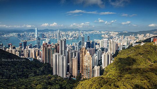 I would say Hong Kong is an incredible city of skyscrapers. The buildings have a small base, built up super high, and crowded together in a high-density area.