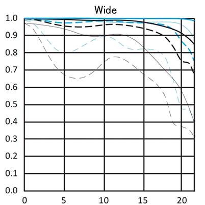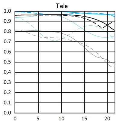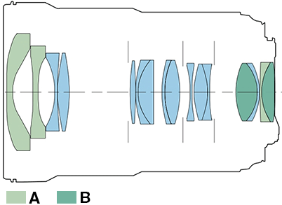 The optical composition of this lens consists of 16 elements in 11 groups. It features two large-diameter double-aspheric GMo (glass-moulded) lenses, a ground aspheric lens, and two UD (Ultra Low Dispersion) lenses. This lens provides higher image quality from the center of the screen to its periphery.