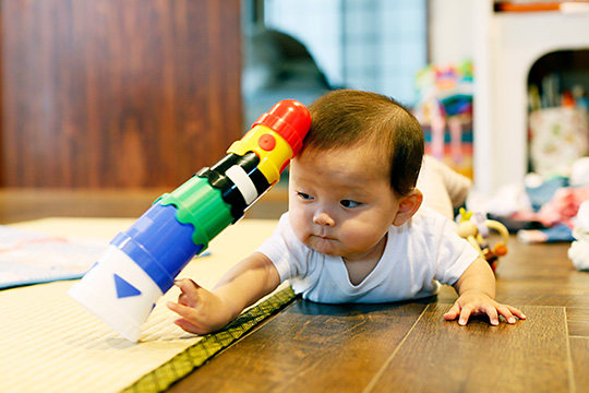 A baby will experience many firsts as it grows up. These include the time when it starts showing interest in things that make sounds, when it starts playing with toys, when it is able to crawl, and when it is able to hold on to something and stand up. To keep track of your baby's milestones, I recommend using the continuous shooting mode, as it is difficult even for professionals to capture decisive moments with one shot without missing them. Take many shots, and select the best ones from among them.