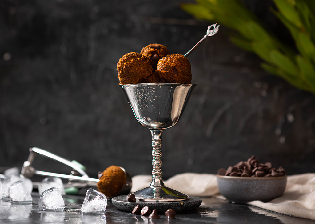 I have opted to use chocolate-flavoured ice cream against a light background to create that homey and comforting vibe of a bowlful of treats at home. It is always good to have complementary and neutral colours in the frame to balance it out. It’s also important not to overcrowd the scene, allowing enough negative space for the viewers to rest their eyes.