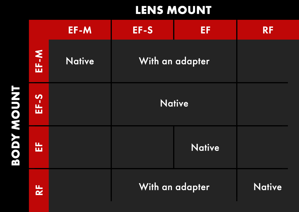 For easy reference on which mount can accept which lenses, here’s a handy table: