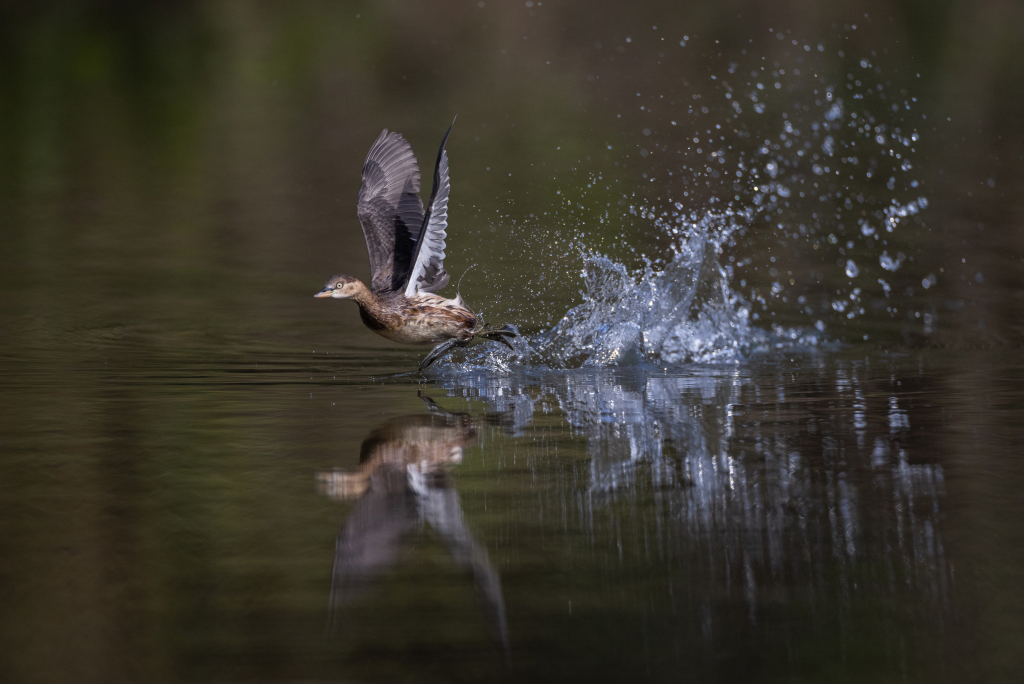 If you are new to photographing flying birds, swimming birds are probably among the easiest to start with. They are easy to spot, and the predictable movement direction makes it easier to keep them in focus. The tricky part is the sudden acceleration when they start to fly.