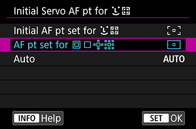 Under the default (‘Auto’) settings, the camera searches for the best AF point over the entire AF area. Setting an initial Servo AF point “tells” the camera where to start searching, which speeds up the process.
