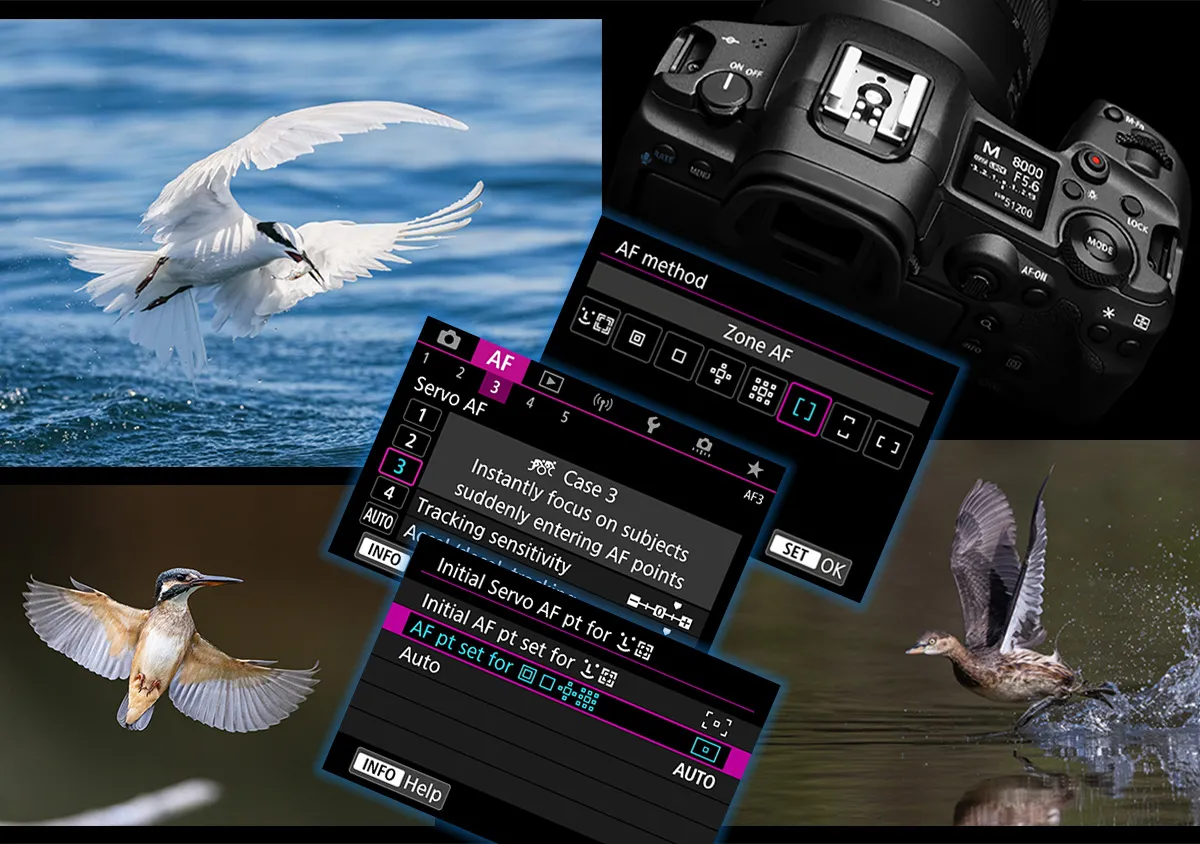 When photographing a bird in action, getting the bird in focus is easier said than done. The new EOS iTR AF X system on the EOS R5 and EOS R6 easily detects the body, head, and even the eyes of birds, but for some tricky scenes, some tweaks in the menu could help it to perform even better. Professional photographer Neo Ng, whose love for photographing action takes him where the diving and hunting birds are on his days off from shooting sports, shares some tips. (Reported by: Neo Ng)