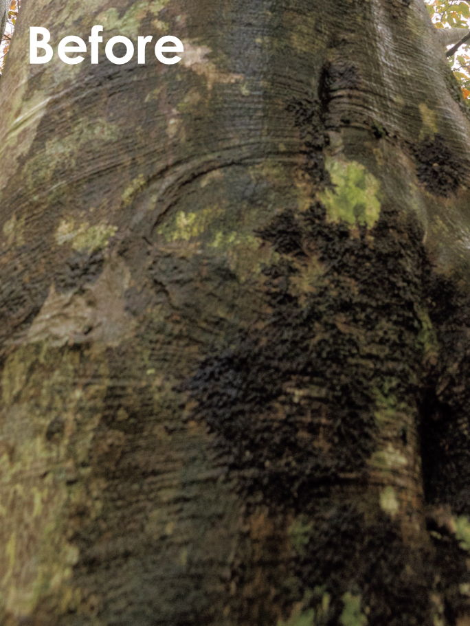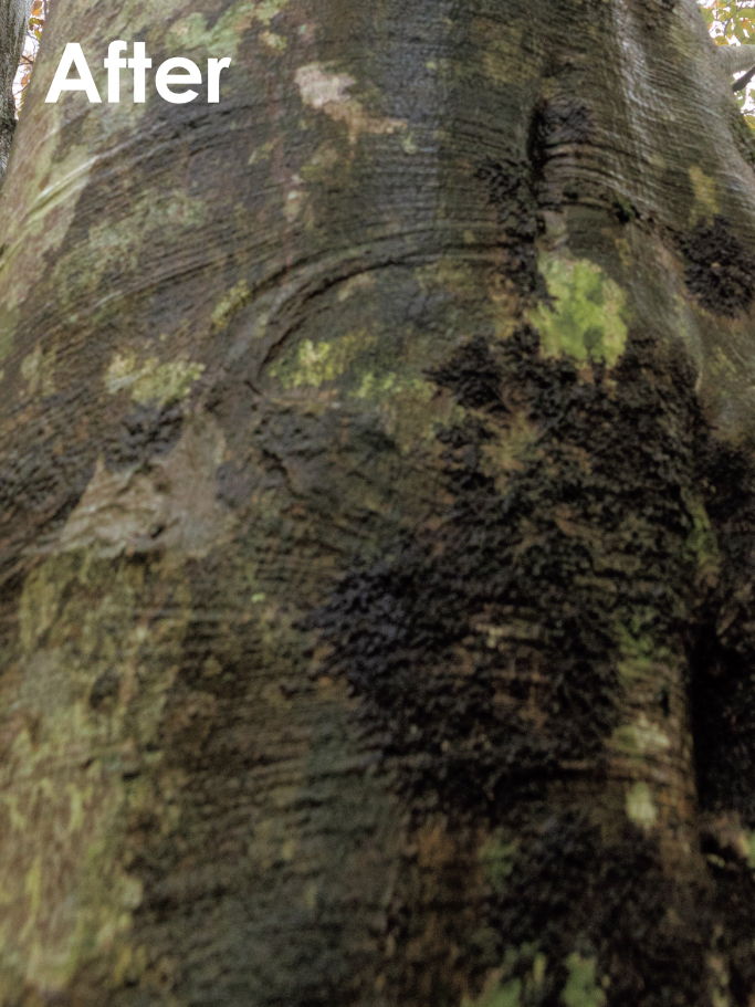 Setting a warmer white balance resulted in a red colour cast on the bark.
