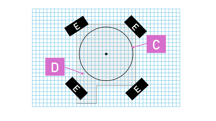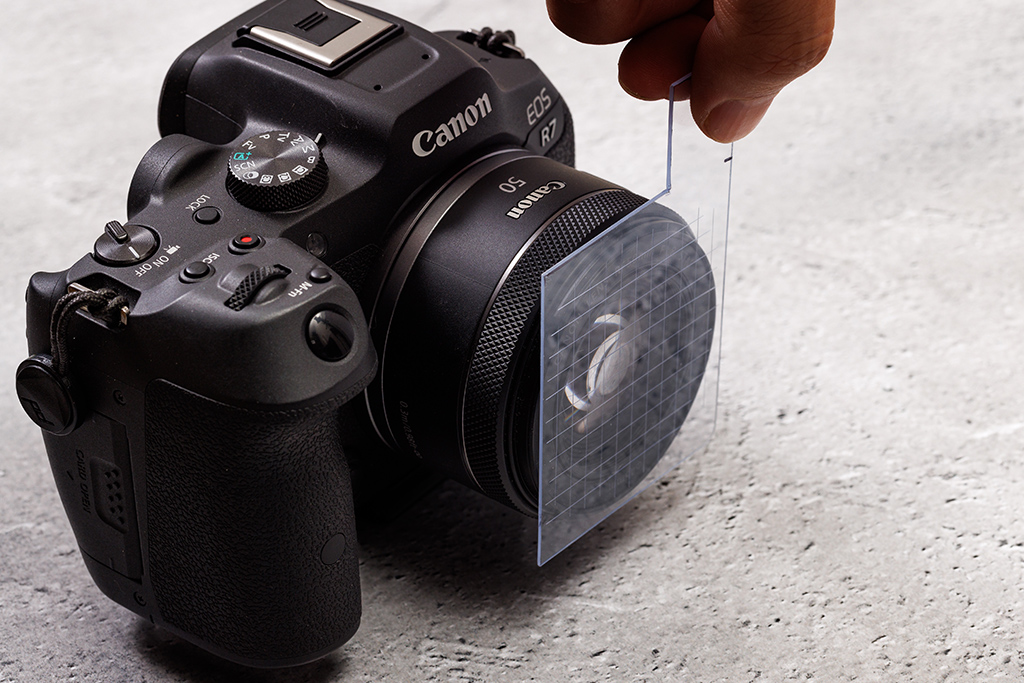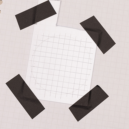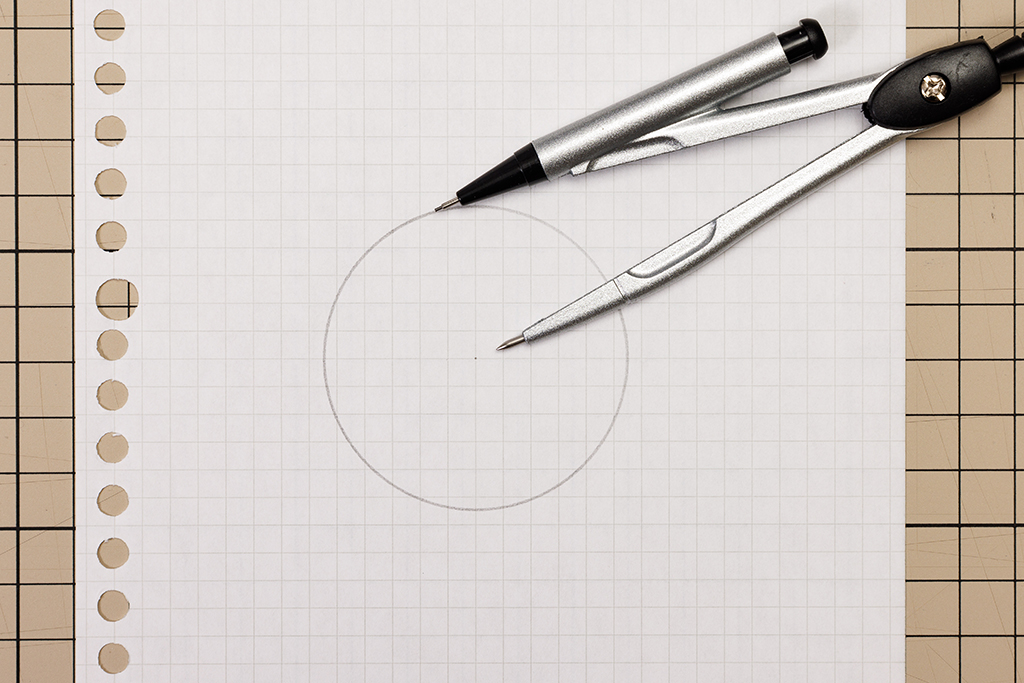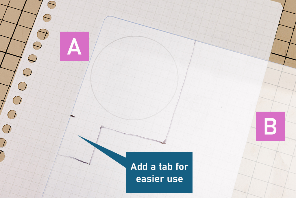 i) Using the compass (A), draw a circle with a diameter 10mm bigger than your lens filter thread onto the graph paper (B). For example, if you want to create a filter for the RF50mm f/1.8 STM, which has a 43mm filter, your circle should be at least 53mm.