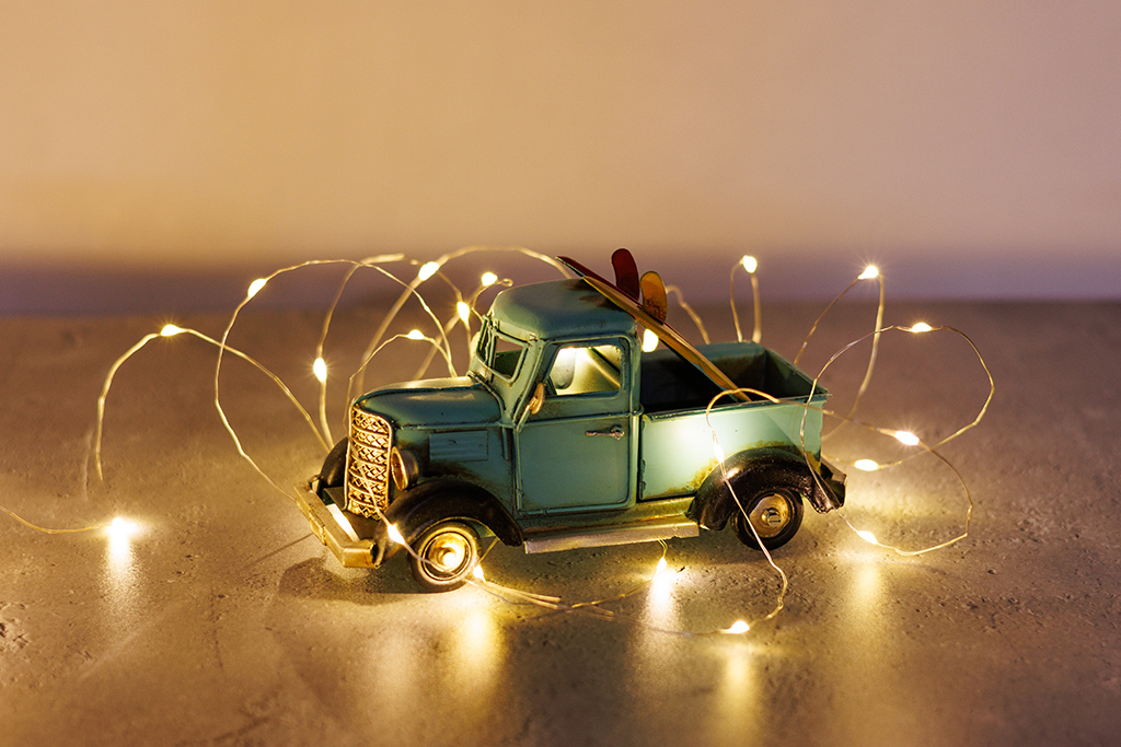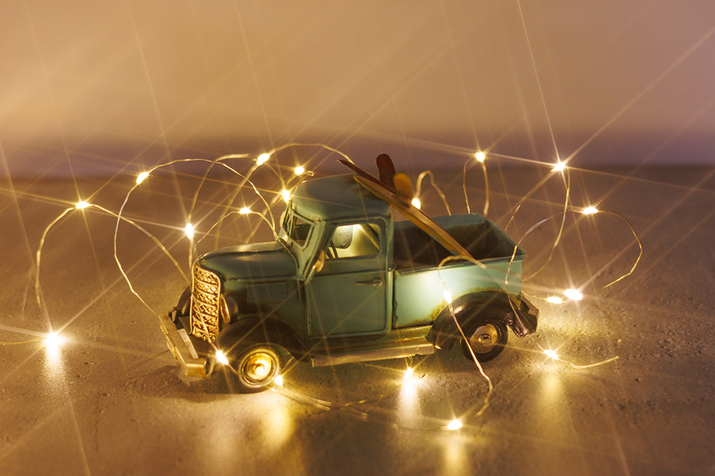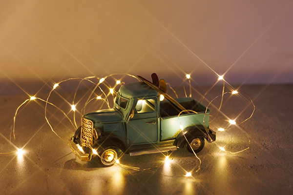 Put your newly made DIY star filter in front of your lens to create lovely 4-pointed starbursts from fairly lights and other point light sources.