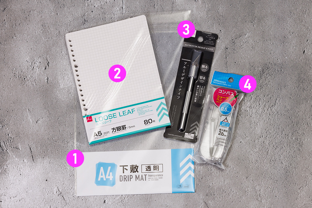 The star filter I used in the main image was created using items you can find in a stationery shop, or might even already have at home. I bought items 1-4, shown below.