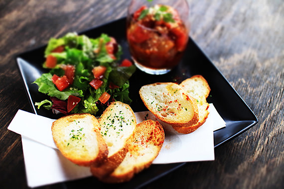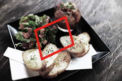 One of the basics to photographing food is to create variations by altering the shooting angle, composition, or background. If you are seeking simpler but yet bolder differences, try changing the aspect ratio of the image. When you are shooting a single dish, in particular, using the 3:2 aspect ratio would create a lot of unwanted space. In such cases, the multiple aspect ratios come in very handy. In this example, I selected the 1:1 square format, and captured the shot directly from above. The square aspect ratio offers a simple way to add a cool touch to the image. Other aspect ratio options include 16:9 and 4:3. Try using them too.