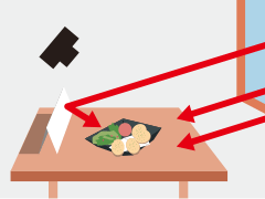 To prevent the image from appearing too flat, I took the shot using light falling on the dish from the side. I used a white book as a reflector to tone down the shadow.