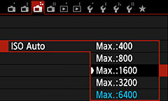 Raising the ISO speed excessively may cause noise to occur, thus deteriorating the image quality. For café shots, a maximum ISO speed of 1600 would suffice.