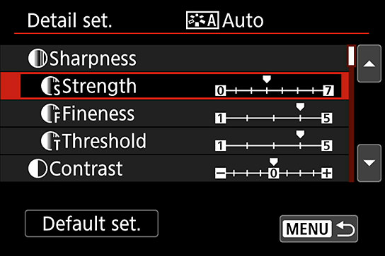 Adjusting the parameters in the [Detail set.] menu will affect the photo in the following ways: