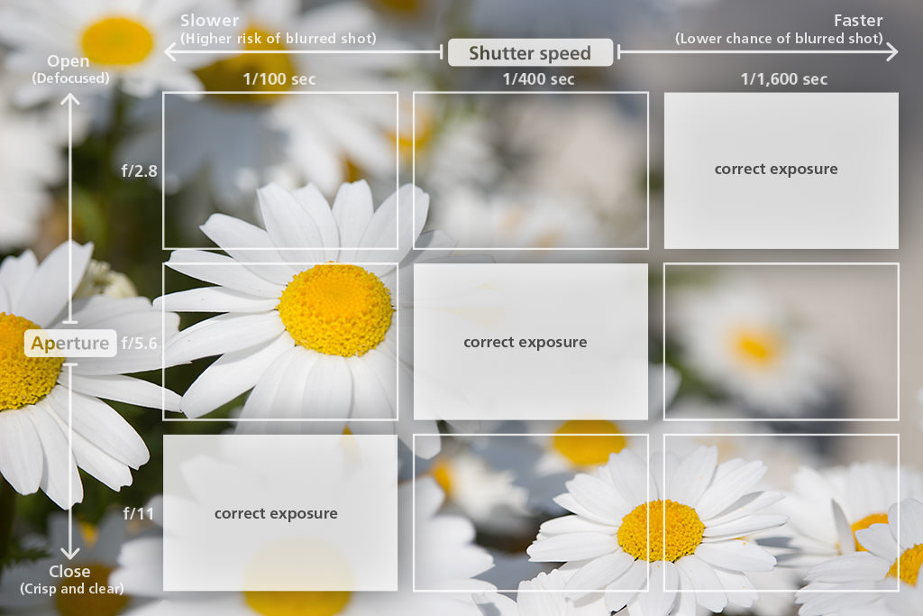 The word “exposure” refers to the volume of light taken in at the instant the picture is taken, which affects the brightness of the resulting image. This volume of light is essentially decided by the combination of the aperture and shutter speed settings.