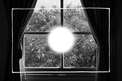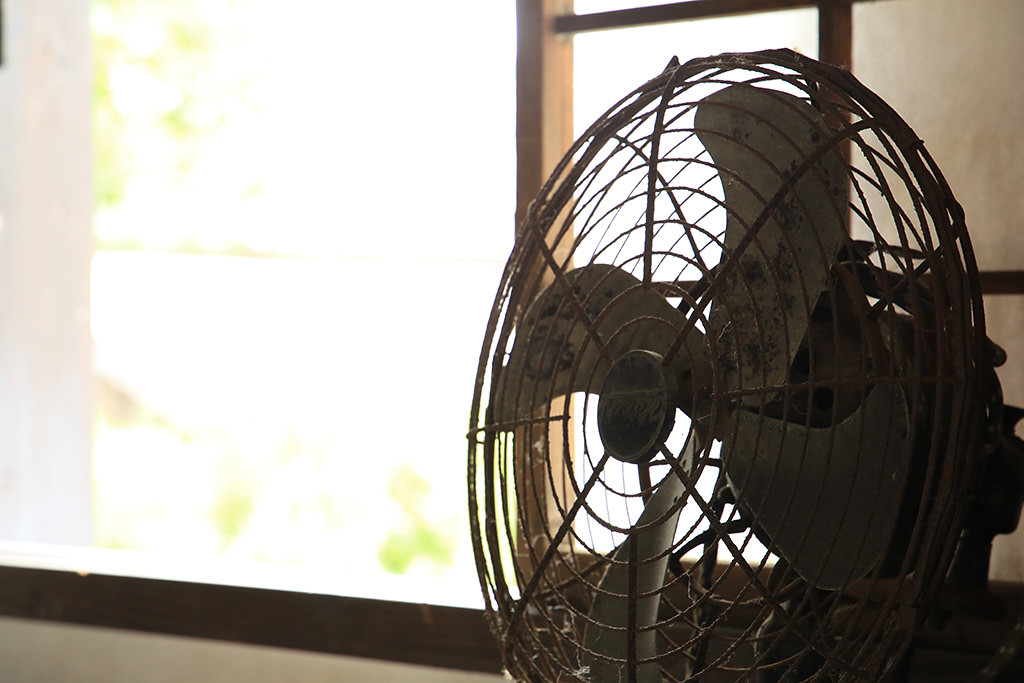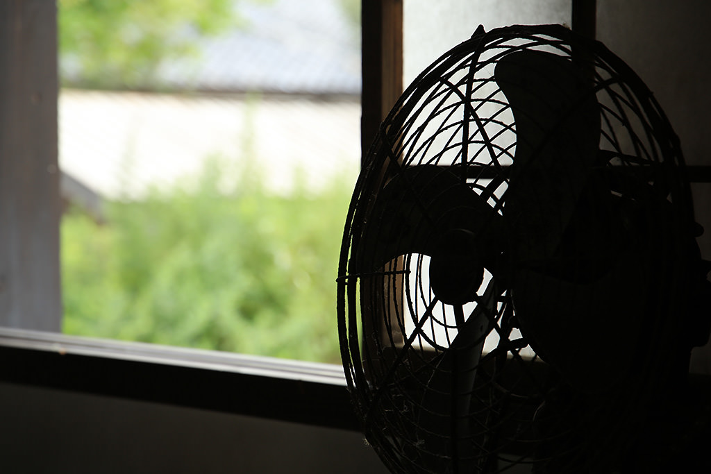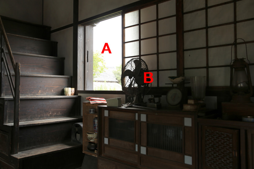 As spot metering was carried out on the bright scenery outside the window, the fan in front has become black.