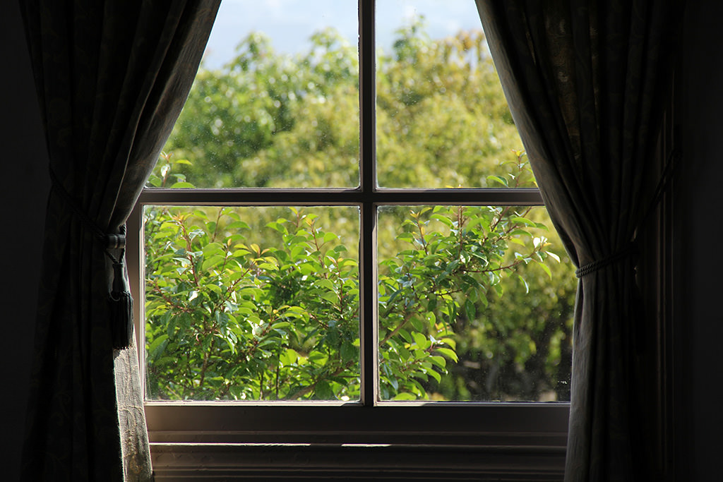 As spot metering was carried out using the fan, the scenery outdoors is overexposed and blown out.