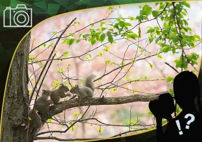 The point you need to pay most attention to is how to capture the background. How much attention you pay to this point will significantly impact how good your shot will turn out. Below is an example of an unsuccessful shot, which resulted from the angle being too low. The squirrels came to the location that I anticipated, but I was too late for the shot. In the main shot above, I increased the angle for the shot so that the cherry blossoms filled the background at once. Try using manual exposure when shooting in order to avoid changes in the exposure due to the background.