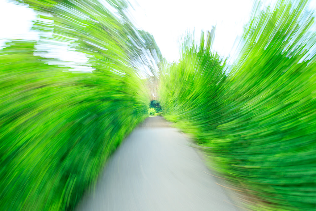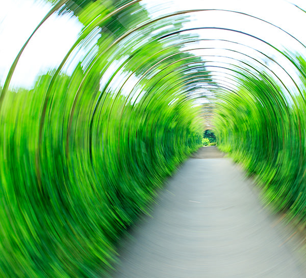 By combining the circular panning and zoom burst technique while standing in the middle of a tunnel of greenery, I was able to create a vortex effect. Placing the focal point of rotation in the centre makes for a beautiful image.