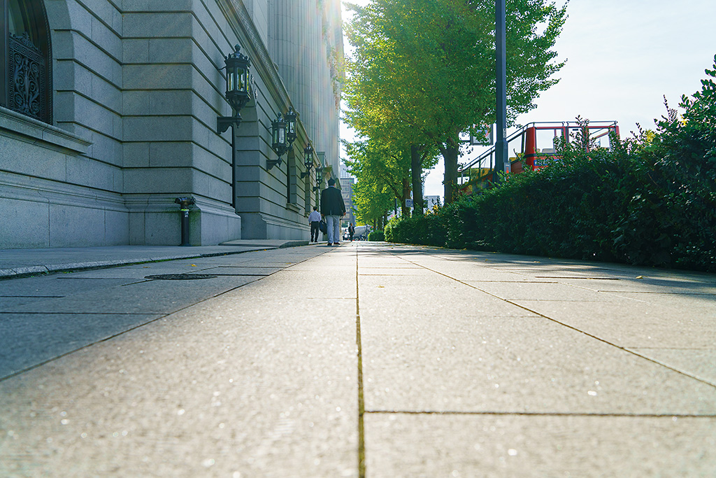 As for camera angle, when you point your camera downwards from the horizontal plane, the resulting shot is known as a high angle shot, which allows you to capture the expanse stretching from your feet into the background of the image. On the other hand, pointing your camera upwards is known as a low angle shot, which makes it easy to express a sense of space towards the sky. Both of these techniques enhance the photographic effect when combined with images that emphasize the perspective distortion of a wide angle lens.
