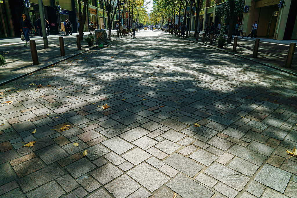 Taking high angle shots is an easy way to express the sense of space before you. It also has the effect of making a narrow space appear wider. When shooting in direct light, take care to ensure your own shadow doesn’t get in the way.