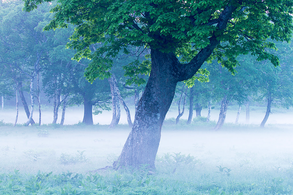 Mist and fog, which often occur on elevated ground especially in the early morning, can create a quiet, eerily beautiful atmosphere. But lighting conditions also make them notoriously difficult to photograph. What settings should we use in order to capture the vivid green of budding leaves and impressively capture the morning mist shrouding the roots of the trees? In this article, I will introduce various techniques used by professional photographers. (Reported by: Rika Takemoto)