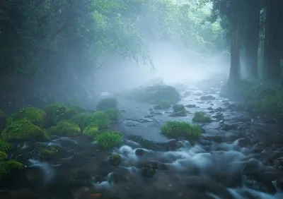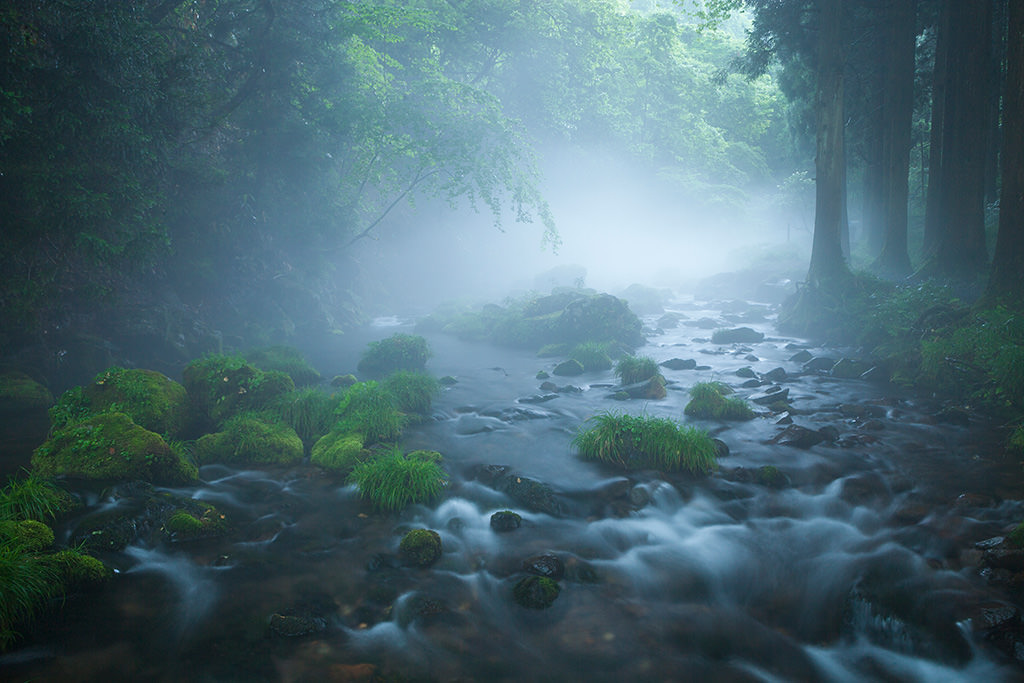 What settings should you use on your camera to photograph cloudy mist and a flowing stream in a mysterious, dream-like scene? A professional photographer goes over the techniques he used. (Reported by: Yoshio Shinkai)