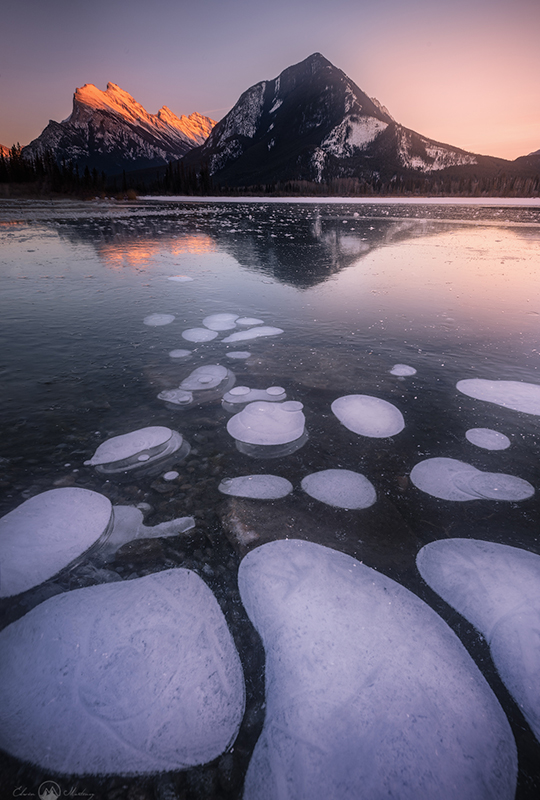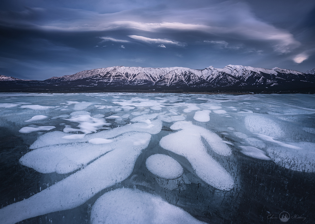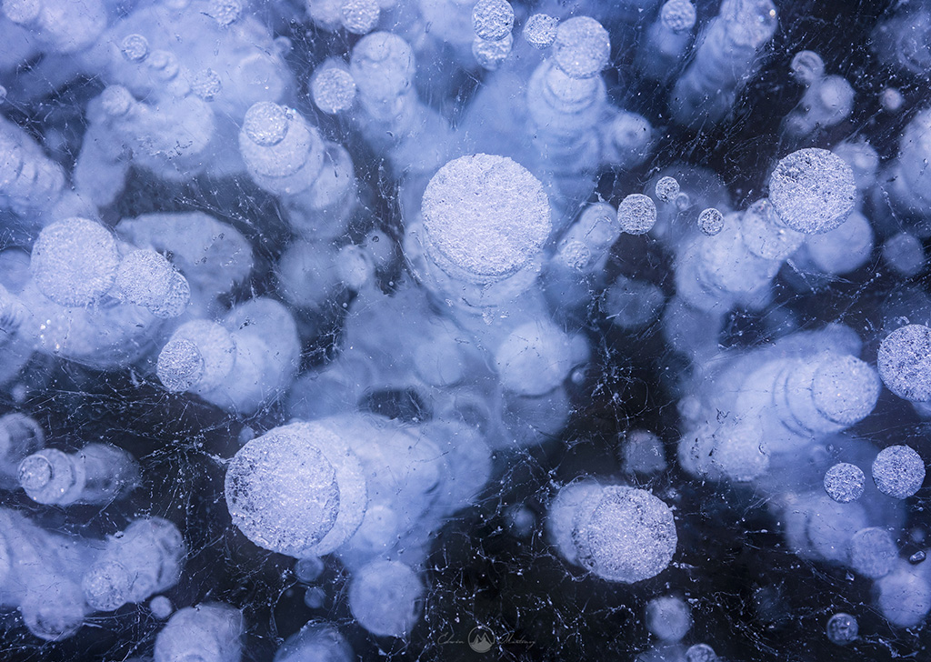 frozen methane bubbles in Abraham Lake. There are few places in the world where you can see this phenomenon.