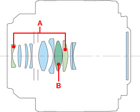The in-lens image stabilizer mechanism includes Hybrid IS, which corrects angular shake (where the camera is tilted) as well as shift shake (which occurs when the camera is displaced along a plane). AF is driven by a stepping motor (STM).