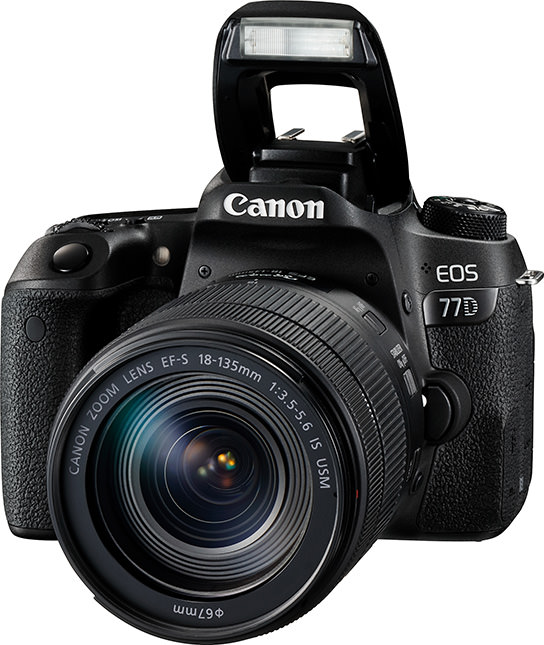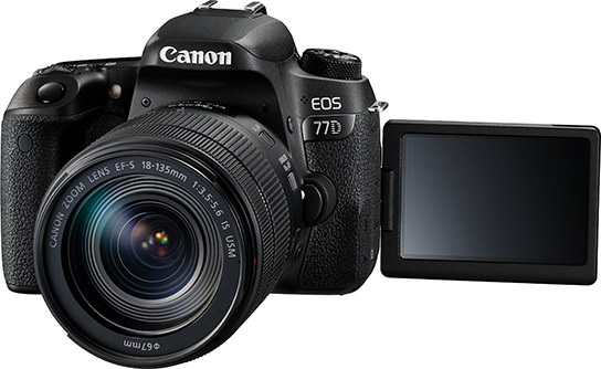 The EOS 77D shares the same basic features as the EOS 800D, but is enhanced with additional features geared to cater to photography enthusiasts. It is available in two kits, one the EF-S18-135mm f/3.5-5.6 IS USM lens and the other with the new EF-S18-55mm f/4-5.6 IS STM lens, as well as just the body alone.