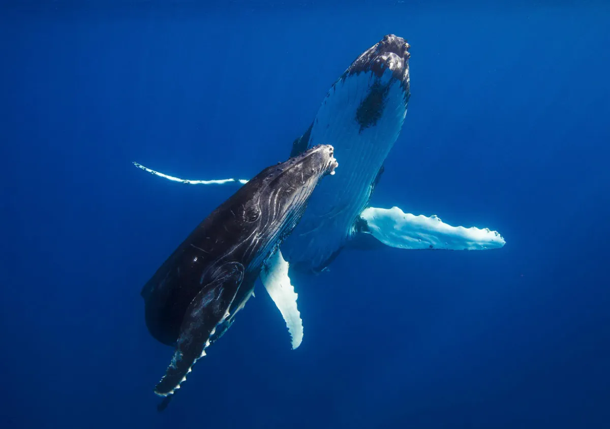 A humpback whale mum and calf dancing in front of me.