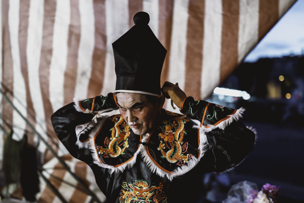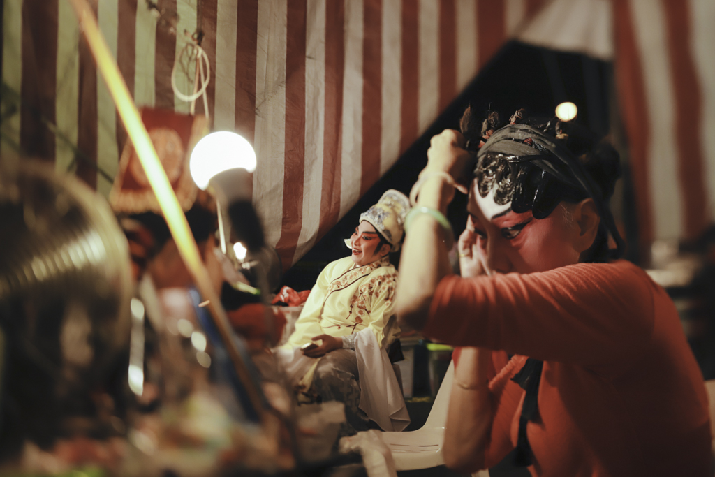 The exploration of the market leads Julian and Alvin to another discovery – a Teochew (Chinese dialect group) opera stage, set up at the far end of the wet market. Knowing that the opportunity to photograph an opera troupe does not come easy, the duo proceeds to request permission for a photoshoot.