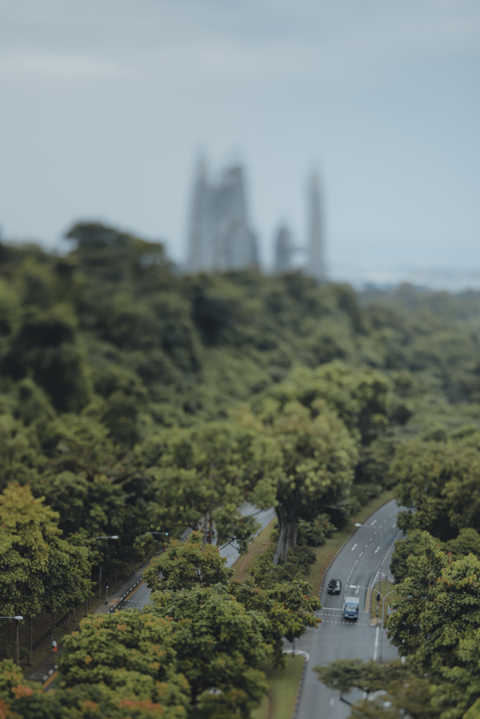 The park’s vantage point overlooks the city, which is covered partially by a canopy of lush tropical trees. Using a Tilt-Shift lens, Alvin captures shots of the cityscape and close-up photos of the wildlife that dwells within the park. Tilt-shift lenses take photography to the next level through its complex manoeuvre of the tilt and shift mechanisms, which are used mostly for architecture photography to capture the lines and shapes of a building closest to what the human eyes see (shift). Tilt-Shift photos are also commonly known for its miniature look, where subjects are kept sharp on a single plane (tilt) while the rest of the photo becomes blurry, altering one’s perspective of the photo.