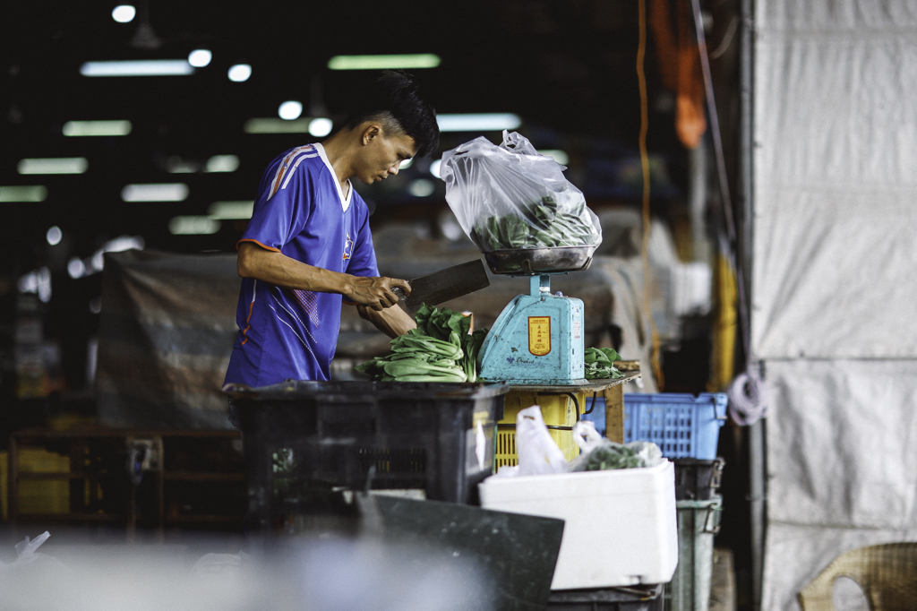 Within walking distance from the park is a wet market, where fruits and vegetables are sold wholesale. As the market workers pack, chop, and transport fresh vegetables, Julian and Alvin remain inconspicuous and capture the market activities through their lenses.
