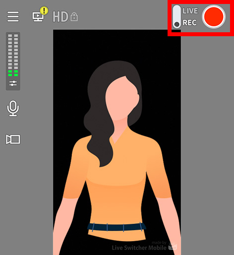Tap the red button to record a rehearsal video in “REC” mode. Tap the same button again to stop. The video will be saved in your gallery as an MP4 file.