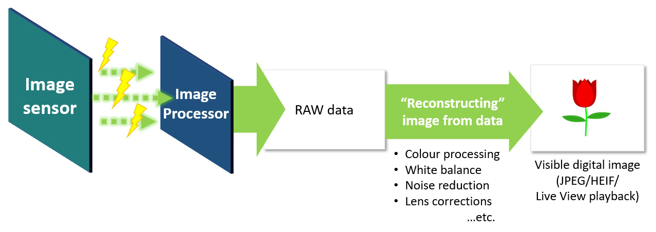 The RAW data is like the digital version of film negatives—it needs to be digitally developed (processed) before we can view the image. It is the DIGIC image processing engine that controls the image sensor, reads the electrical signals, and does the digital image development.