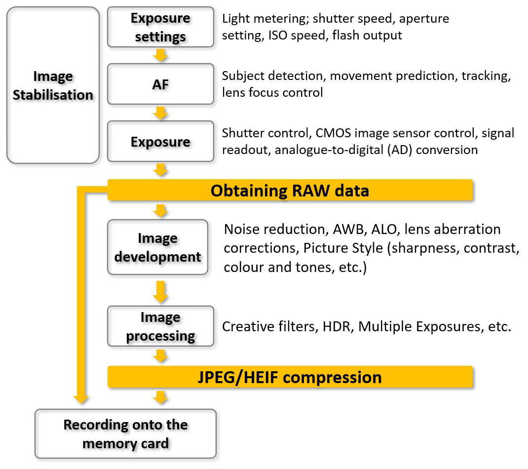 Of course, that’s not the end of what DIGIC does. In fact, it’s just the beginning. The flowchart below shows how DIGIC is involved in every stage of image making, before and after you release the shutter: