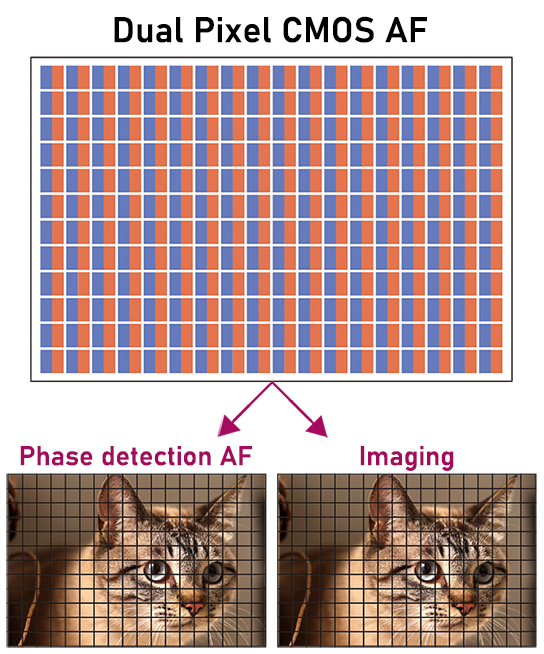 Dual Pixel CMOS AF is the solution that Canon developed to improve AF performance without affecting image quality: all pixels can perform both phase detection and imaging.