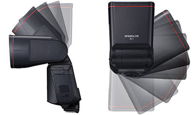 The flash head of the Speedlite EL-1 can be rotated 120° upward, 7° downward, and 180° left and right. This gives it a larger upward bounce angle scope than the Speedlite 600EX II-RT, which is rotatable 90° upward.