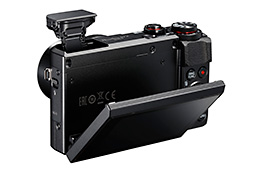 The lens, which has a 35mm film-equivalent focal length of 24 – 100mm with a maximum aperture of f/1.8 – 2.8, is the same as that on the G7 X. The 3.0-type LCD monitor has approximately 1,040,000 dots and allows touchscreen operations. In addition to the usual 180° upwards, it can also be tilted 45° downwards.