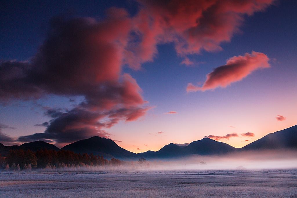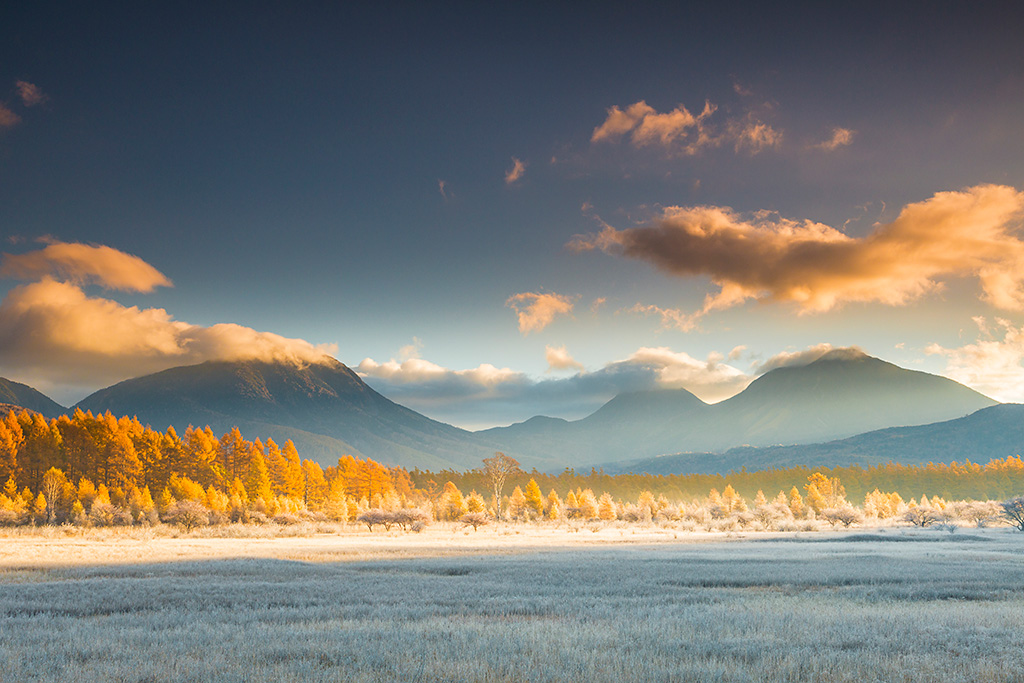The subjects take on a different look every single second, thus it is recommended that you spend at least two hours on the shoot. You can capture the Odashirogahara marshland from either a wide-angle or telephoto focal length, so it is best to bring along lenses that cover a wide focal length range.