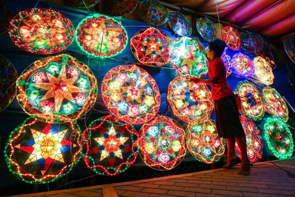 “Known as ‘parol’ in the Philippines, these colourful lanterns adorn the facades of many Filipino homes during Christmas season. Made out of capiz shells, the protective shell of a type of mollusc, or windowpane oysters, they come in an assortment of designs and sizes and are usually sold along some of the busy streets of Manila and in other cities around the country during this season. Even foreign visitors buy and bring them home to their respective countries. Here, a young vendor tends to his display to attract passersby.”