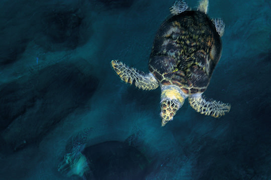 The pan shot of a sea turtle swimming from the top right to the bottom left side of the picture was captured using diagonal composition. The turtle is placed right of centre in the composition leaving the left side of the image open. By doing so, I am trying to guide the line of sight using the pattern on the water surface in order to convey the idea of the turtle swimming in the water. I also wanted to bring attention to the sense of motion created by the subtle blurring caused by the movements of both the water surface and the turtle.