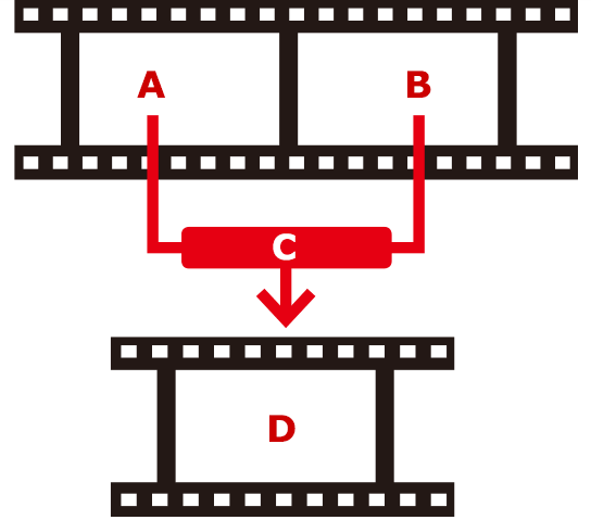 As with the HDR Mode – Natural, HDR Movie Shooting is a mode for shooting movies with the contrast reduced, and is thus suited for scenes where there are strong shadows or when you want to record both indoor and outdoor scenes at the same time. This feature comes in handy when the level of contrast is too high and beyond the control of the Auto Lighting Optimizer. As illustrated in the diagram below, two frames with different exposures are merged for a natural result.