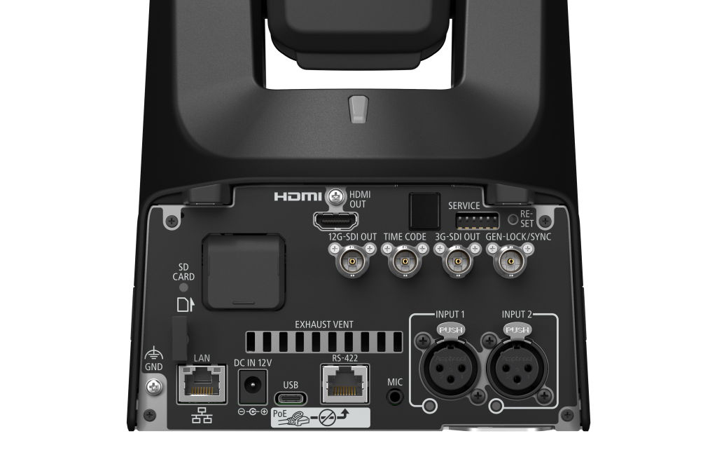 The camera features 12G-SDI, 3G-SDI, GENLOCK/SYNC and Time Code terminals, providing wide-ranging connectivity to meet diverse 4K production needs. This includes the low latency, reliability, and precision control necessary for professional live production and real-time streaming workflows.