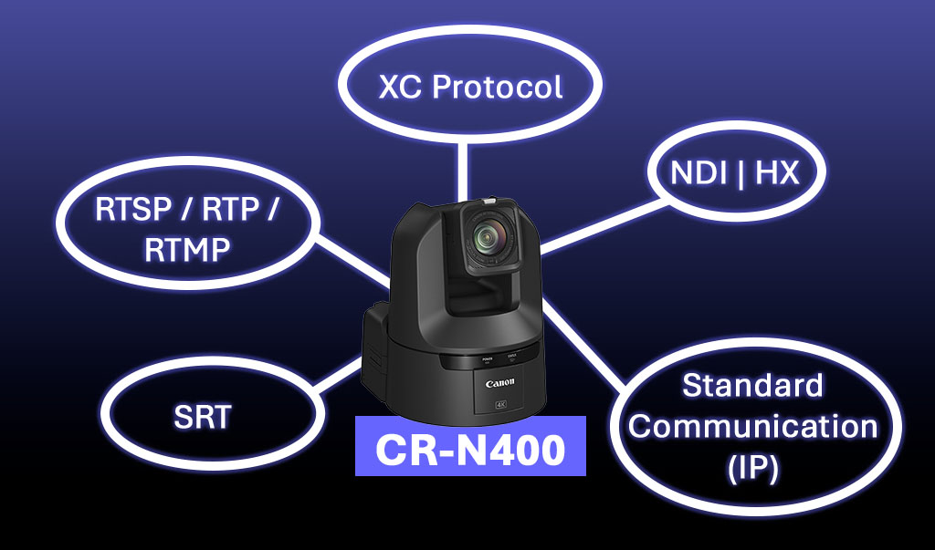 The CR-N400 supports 4K 59.94p 8-bit 4:2:0 IP video output to several IP-based control, production, and delivery systems, making it suitable for teams and workflows that cross geographical barriers and physical boundaries—or simply require a more streamlined yet flexible infrastructure.
