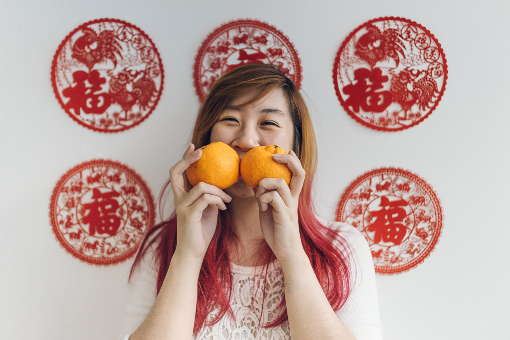 Creativity can be found anywhere and with anything. It may be the simplest object that makes the best prop for a photo shoot. Take the Chinese New Year for example, the plants that are believed to bring you luck, the auspicious paper cutting decorations, or even basic sweet wrappers can be used to make a portrait shot different. Here are three examples to get your creativity juice started.